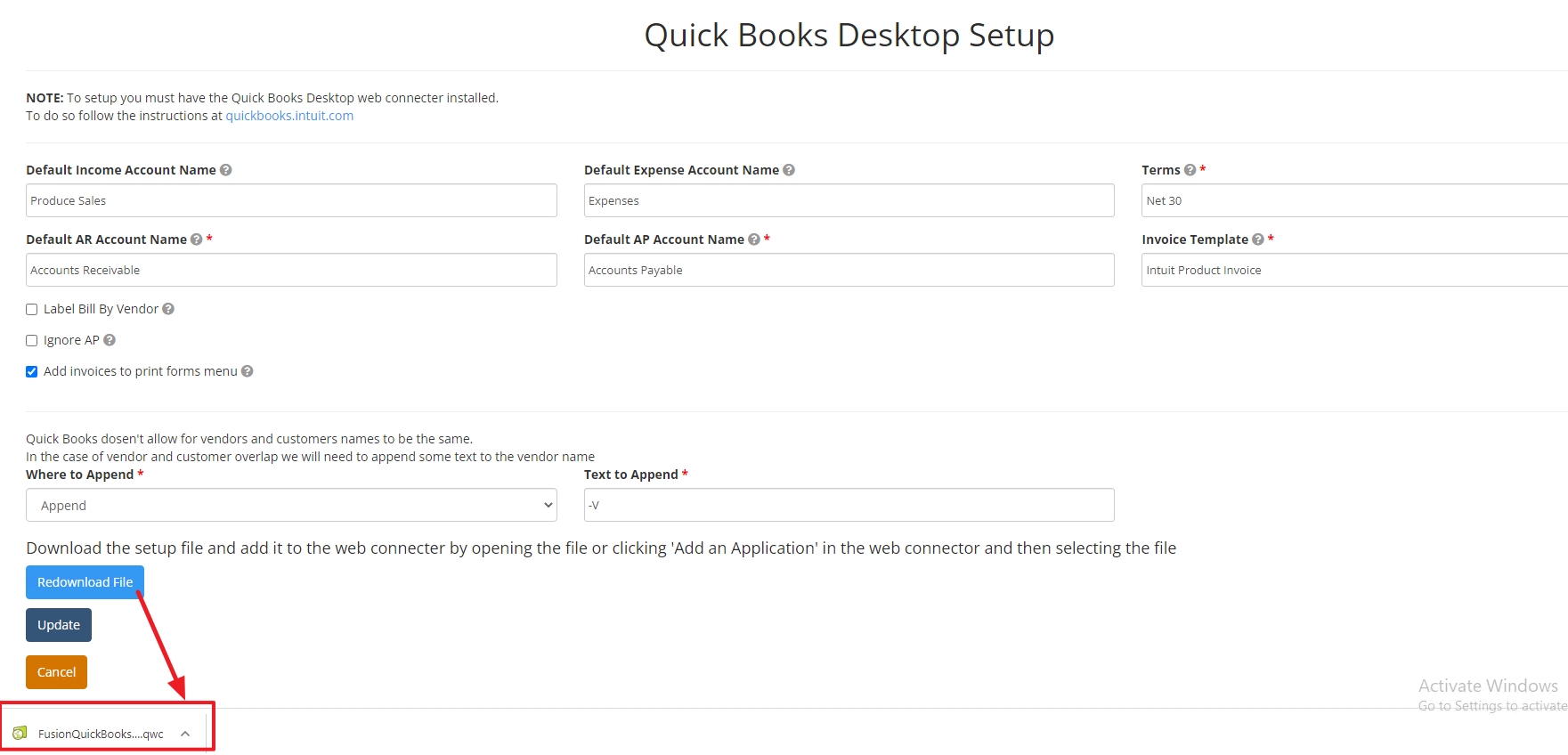 To add the QuickBooks Desktop Integration to your Fusionware account please contact a Fusionware representative.