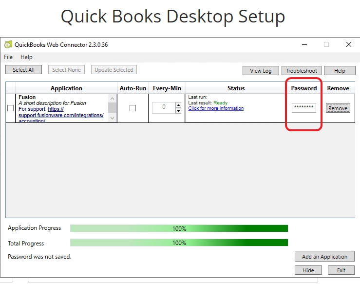 | 9 of 12 The Fusionware User Name/Email and Password you are logged into should auto populate in the Web Connector. If you need to update the password you do it here | ![]() |