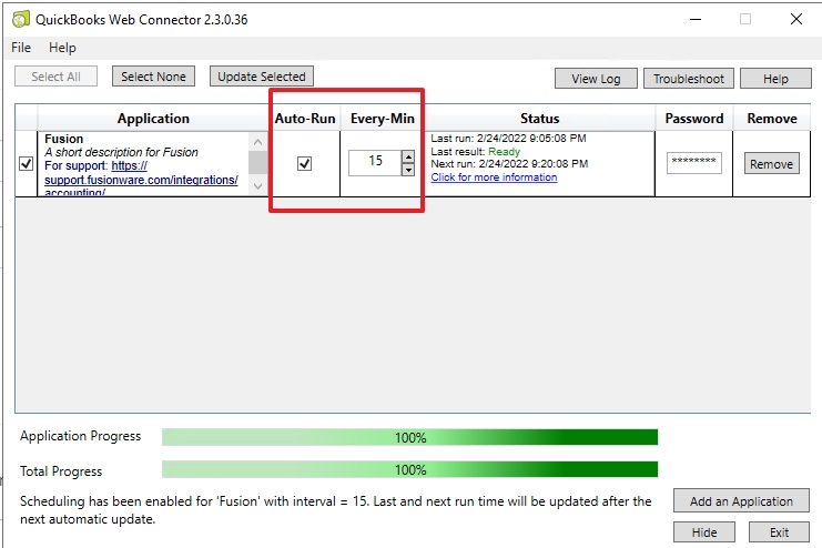 | 10 of 12 Setup/Modify how often you want the Web Connector to Auto-Run | ![]() |