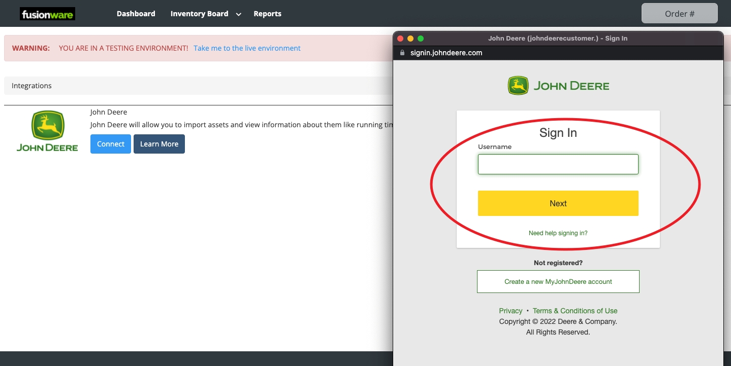 | 4 of 10 Sign Into John Deere in the pop-up | ![]() |