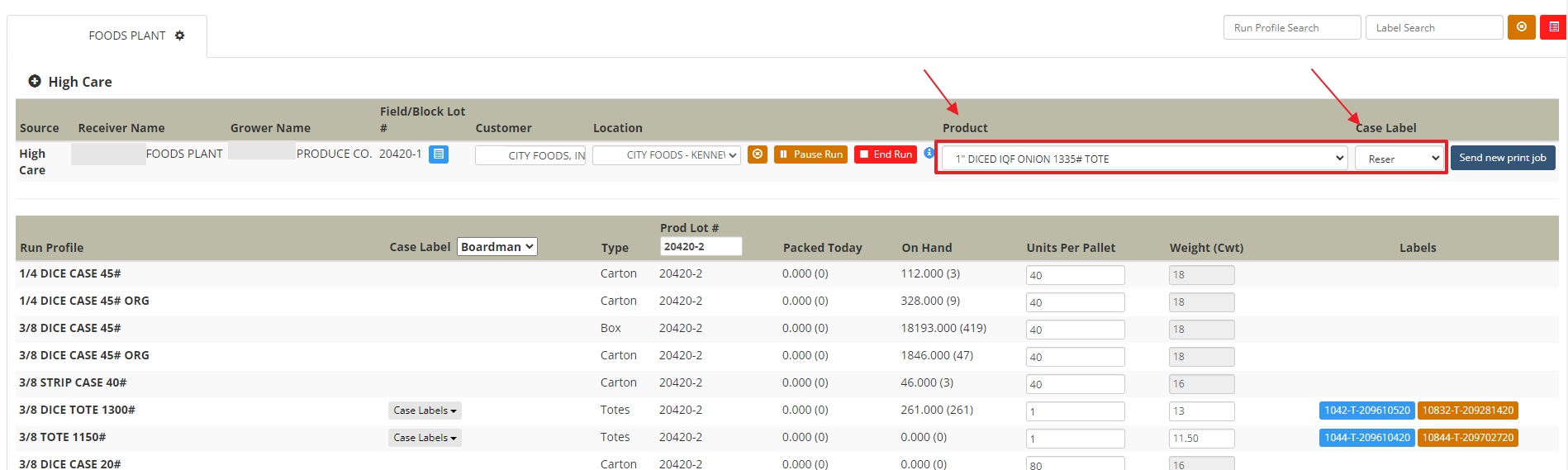 Select the Product you wish to put on the label and then select the appropriate Case Label.  |