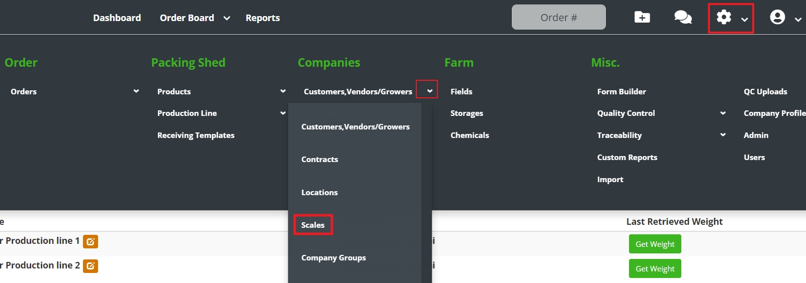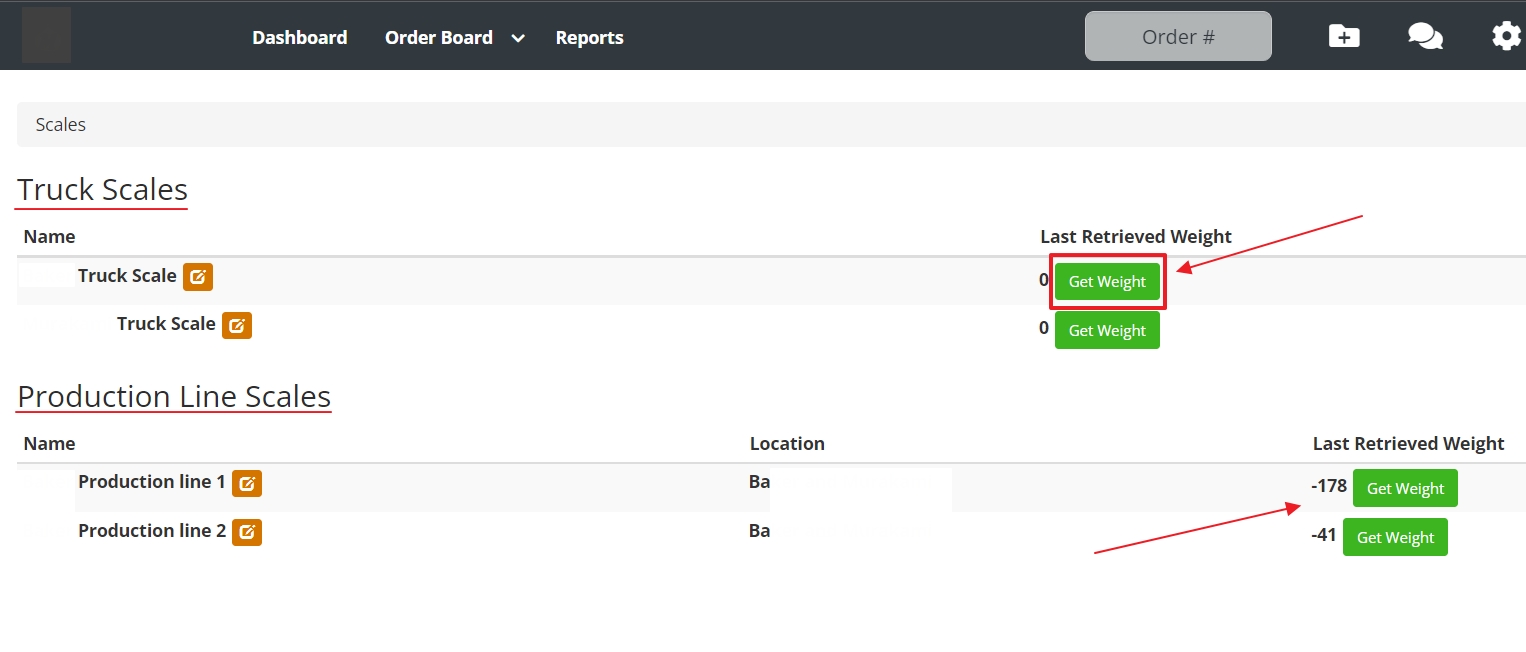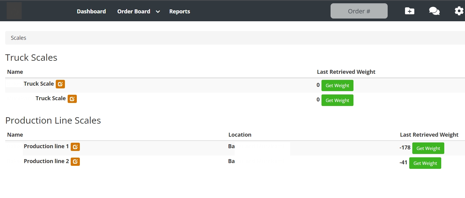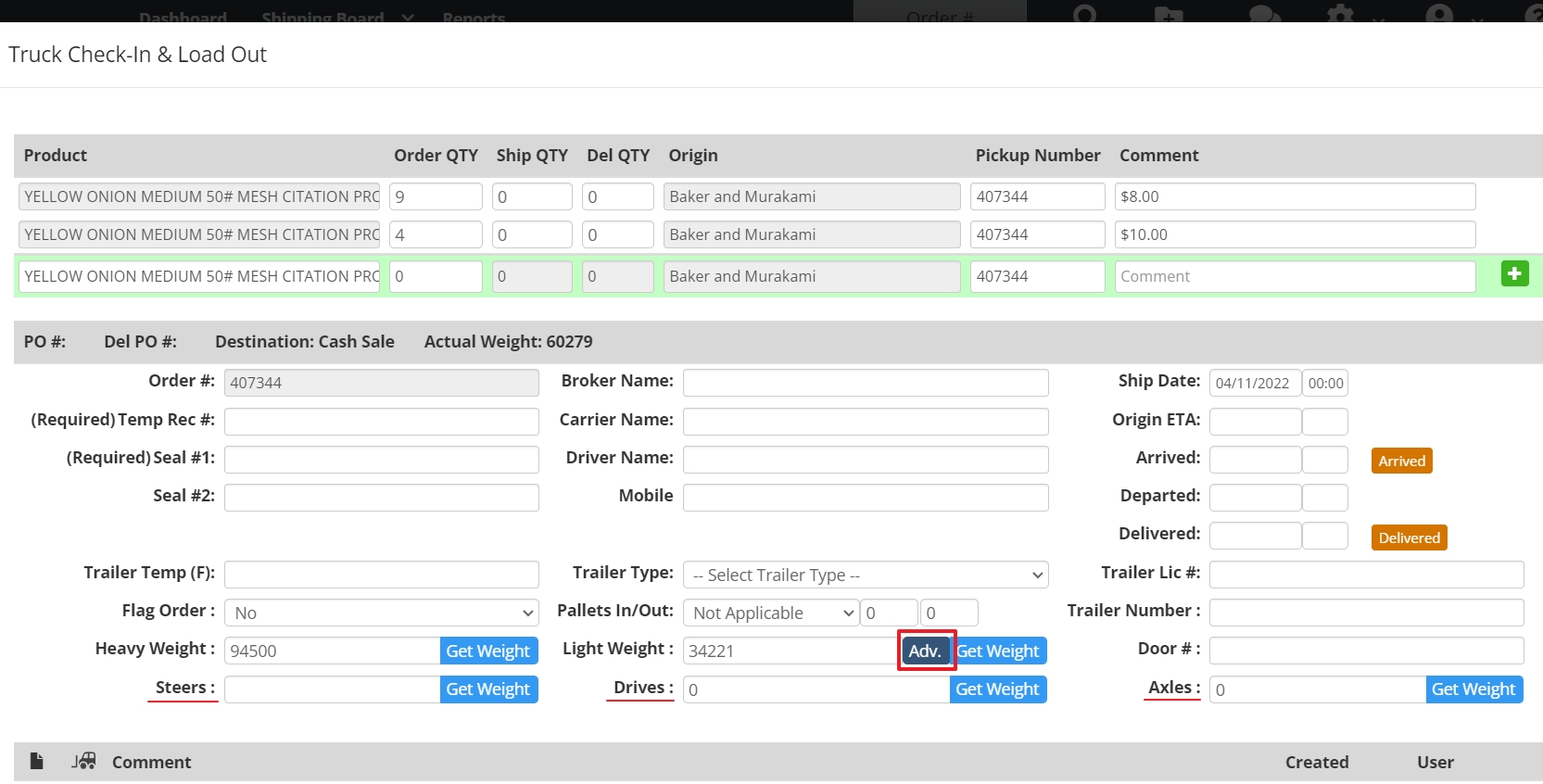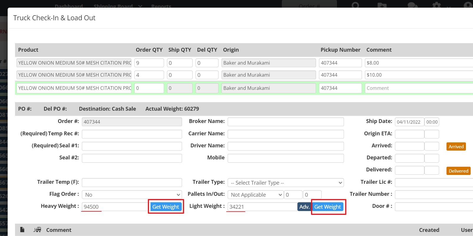 | Shipping Truck Check-In & Load Out: In the Shipping Board, when looking at an order, you have the option to get weight from a scale |