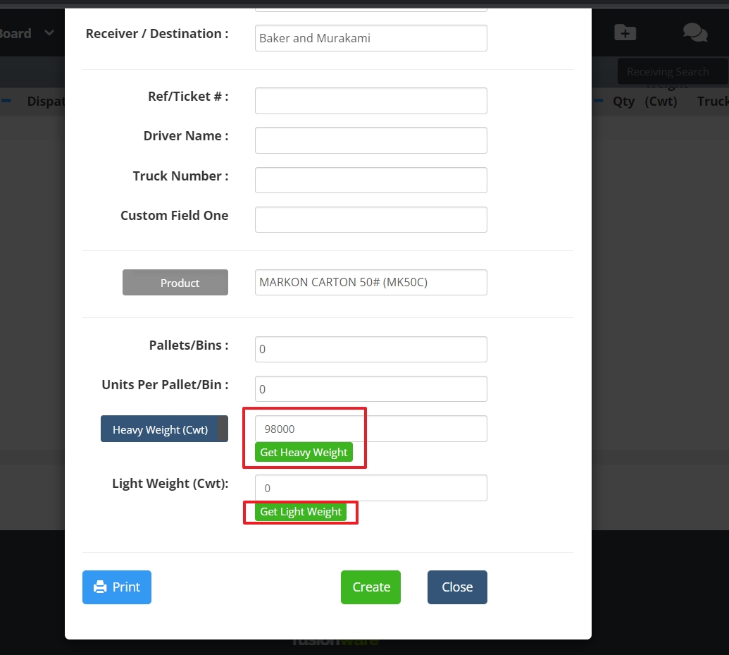 - Fusionware can receive weight from truck scales and most digital scales with an electronic indicator that broadcasts weight over ethernet or serial port