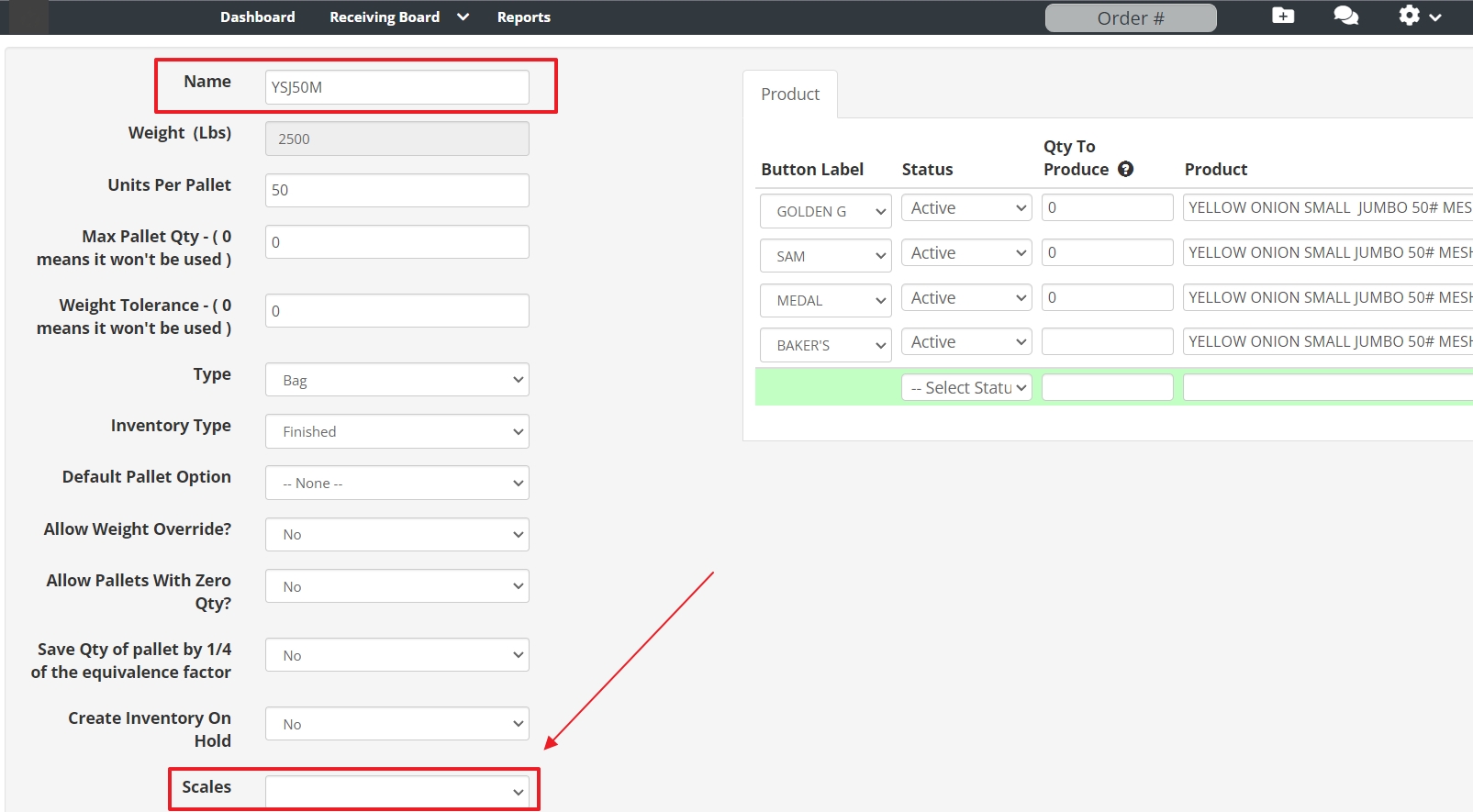 | Select the Run Profile: Then assign the pallet scale to that profile |