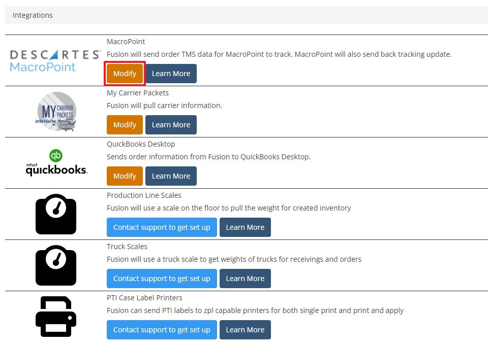 | MacroPoint > Modify | ![]() |