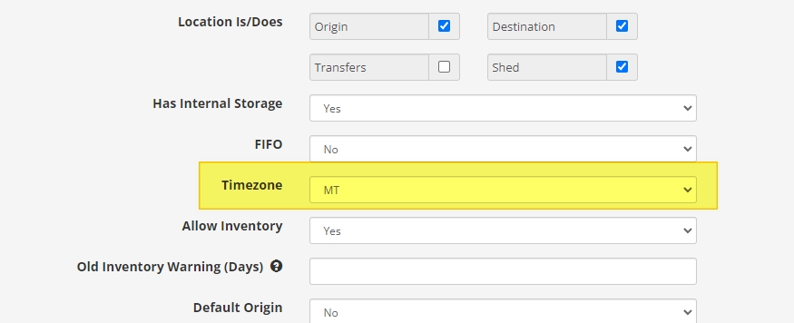 | Origin/Shipping Location Timezone | In the MacroPoint setup you can select the default timezone. You can also adjust the timezone for each shipping location Origin. If no Timezone is selected on the Origin location MacroPoint will use the default selected in the previous step in the MacroPoint setup inside Fusionware. ![]() |