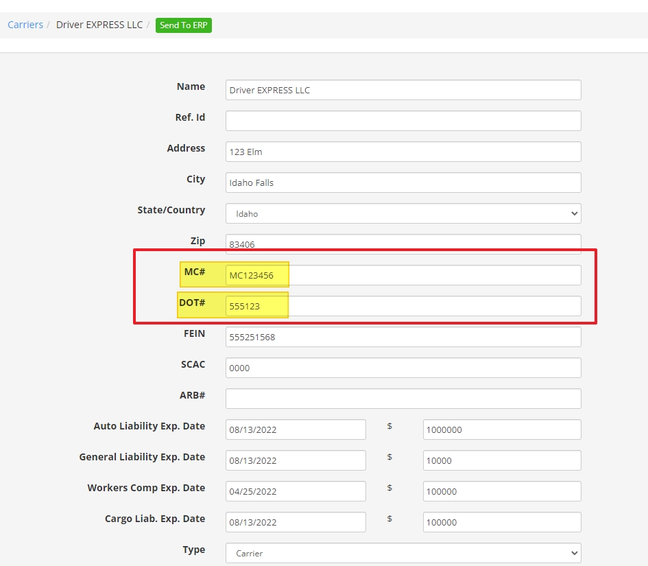 | Carrier MC# & DOT# | If you have existing Carriers in Fusionware, please verify that all have both the MC# & DOT# put in. After starting the My Carrier Packets Integration you will enter all new Carriers into My Carrier Packets and then they will sync with Fusionware. If a duplicate MC# or DOT# exists in Fusionware it will only update the existing Carrier. If the MC/DOT # does not exists in Fusionware it will create a new Carrier. ![]() |