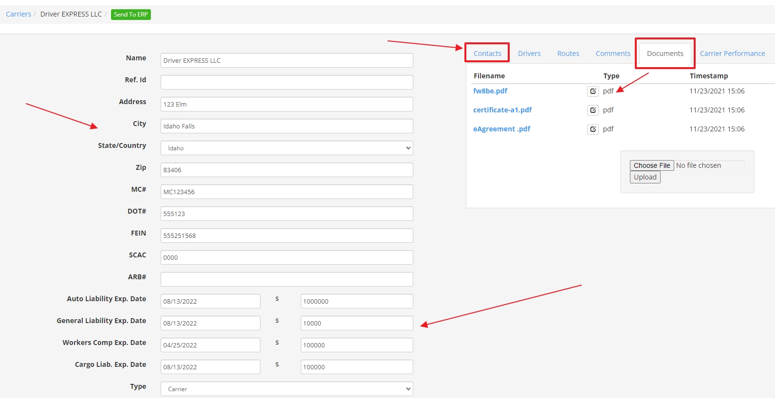 | Data Imported | Company information, Contacts, Documents and Insurance information will import from My Carrier Packets ![]() |