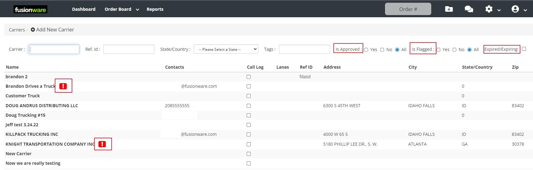| Carriers Section | You can easily see in your Carriers list those that are Approved and flagged. You can also filter by Carrier status as well. ![]() |